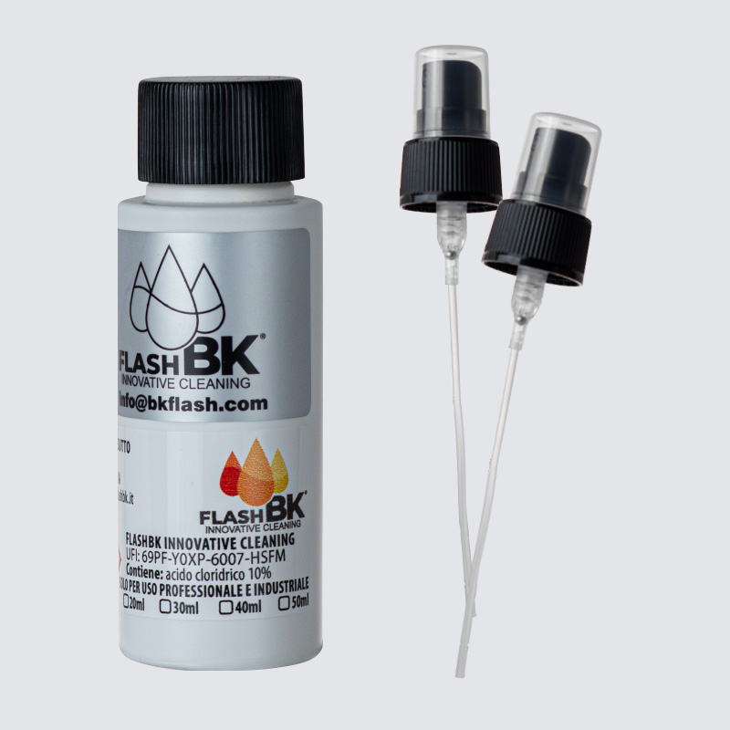 1 tampone in polietilene a cellule chiuse, colore bianco, potere assorbente 97%. Bottiglia FlashBK da 20ml.