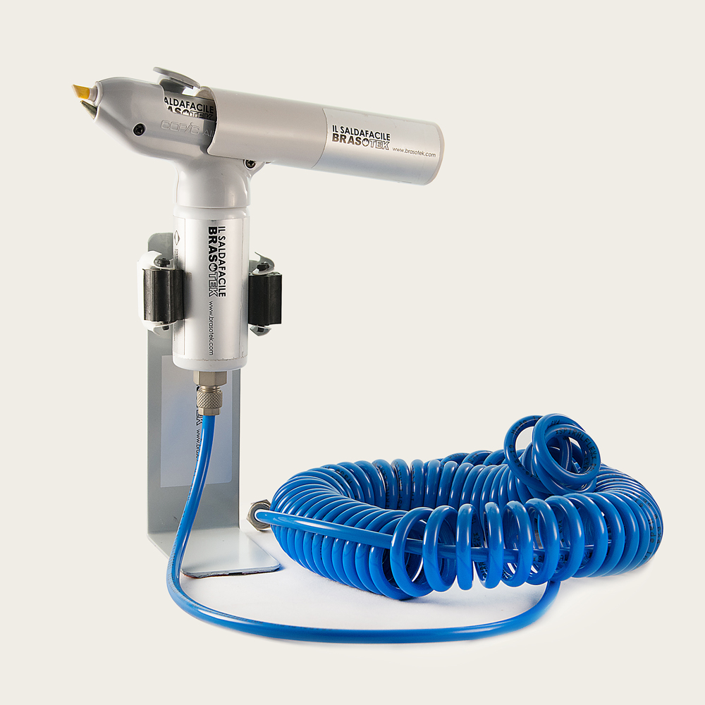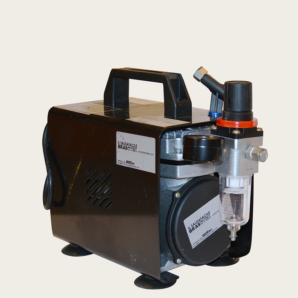 Può essere collegato anche ad un compressore portatile dotato di un riduttore di pressione dedicato con separatore di goccia, tarato massimo a 2.5 bar.